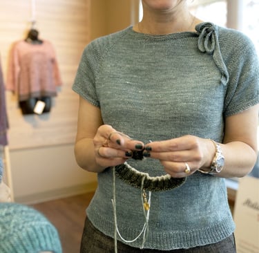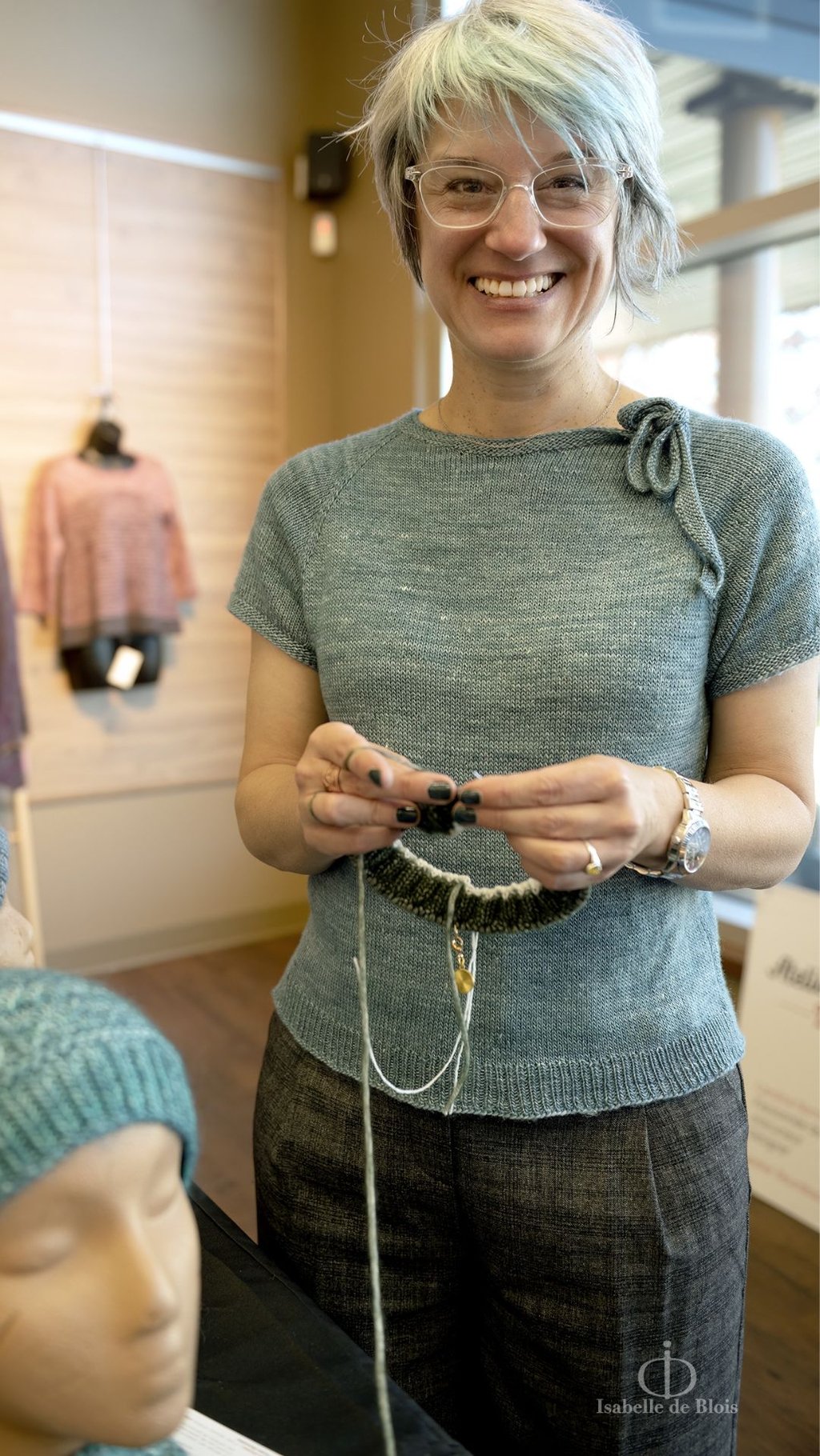 J’aime voir les projets terminés de mes clientes. Elles arrivent à un café-tricot portant fièrement leur création avec des étincelles dans leurs yeux.